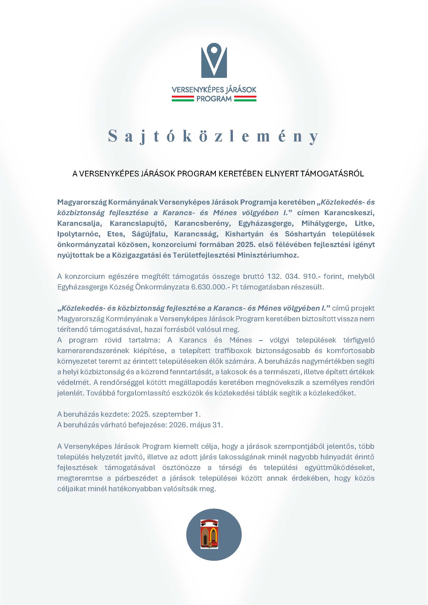 - Egyházasgerge község művelődési házának energetikai korszerűsítése Nyitó sajtóközlemény